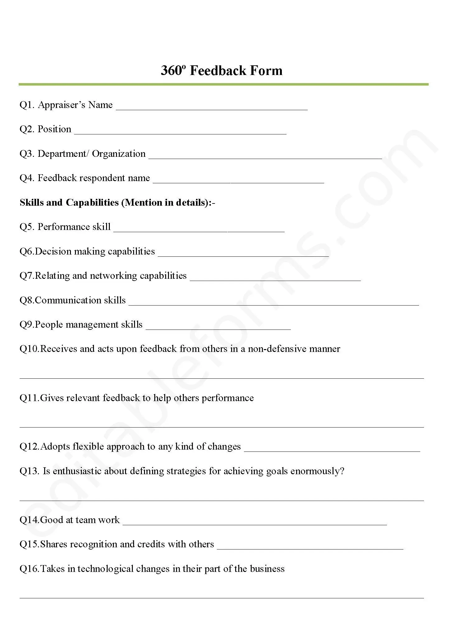 360º Feedback form enable you to increase your knowledge about one’s job role and performance. It is a system where an individual’s peer, superiors and your subordinates gives you a picture about how you are perceived around in your work environment.