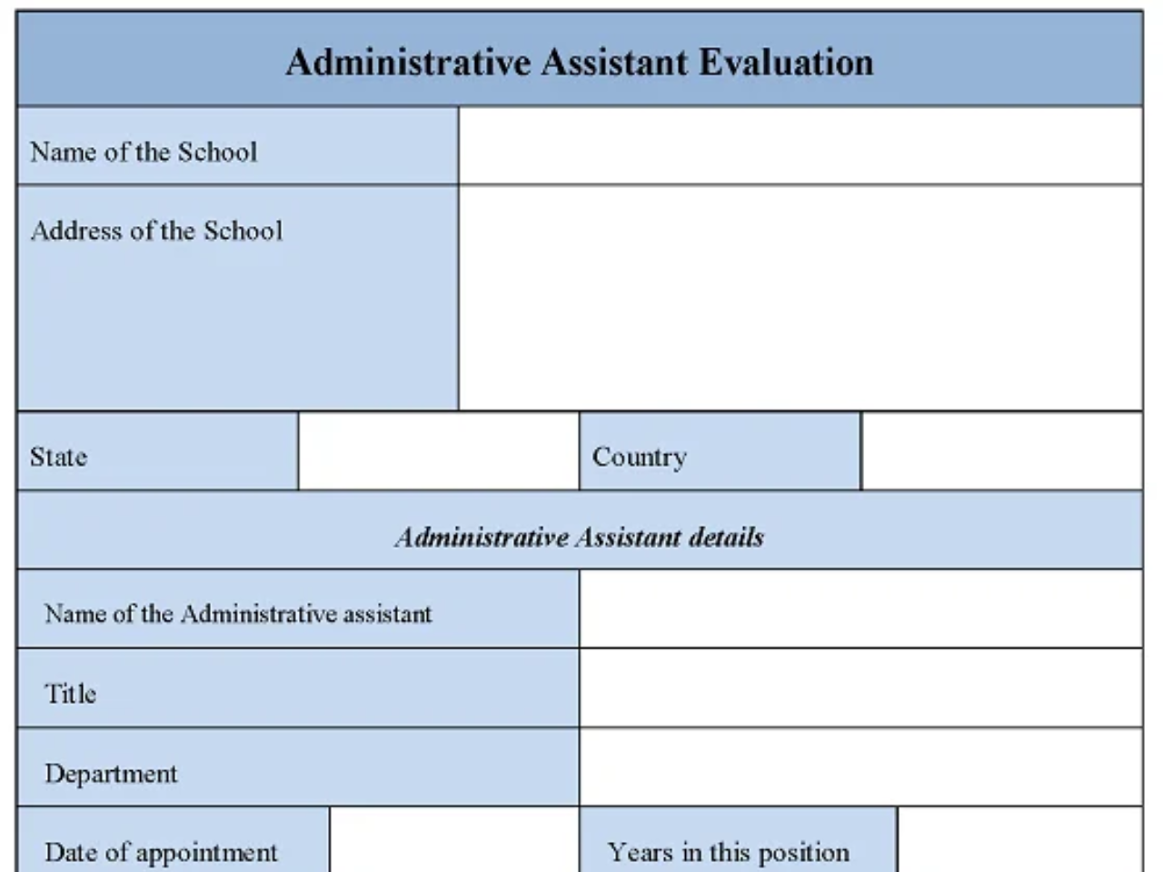 You can Download the Administrative Assistant Evaluation Form post; customize it according to your needs and Print. Administrative Assistant Evaluation Form is either in MS Word and Editable PDF.