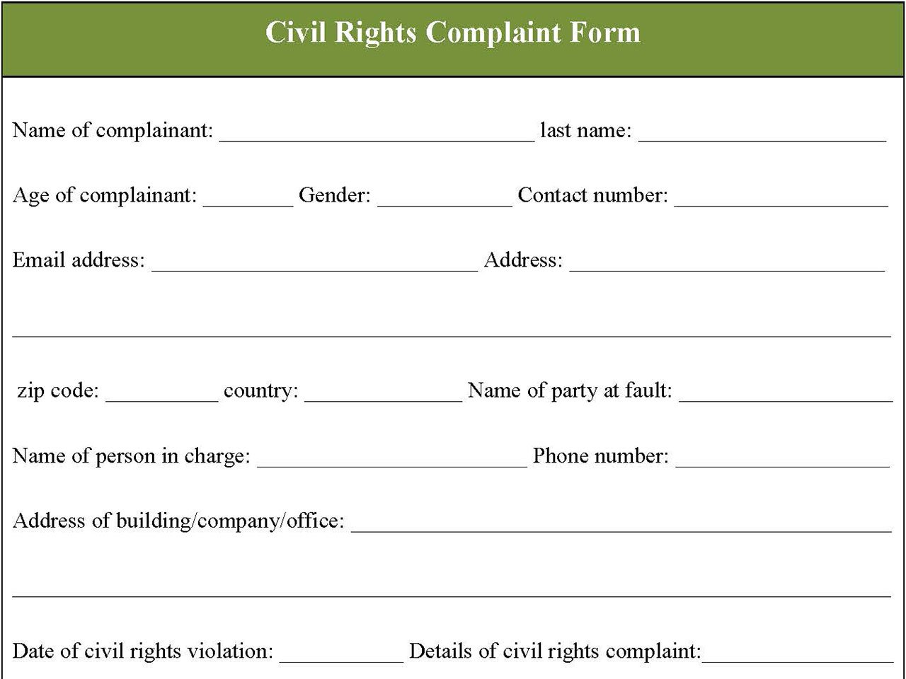 Download the Civil Rights Complaint Form Template, customize it according to your needs, and Print it. Civil Rights Complaint Form Template is either in MS Word or Editable PDF.