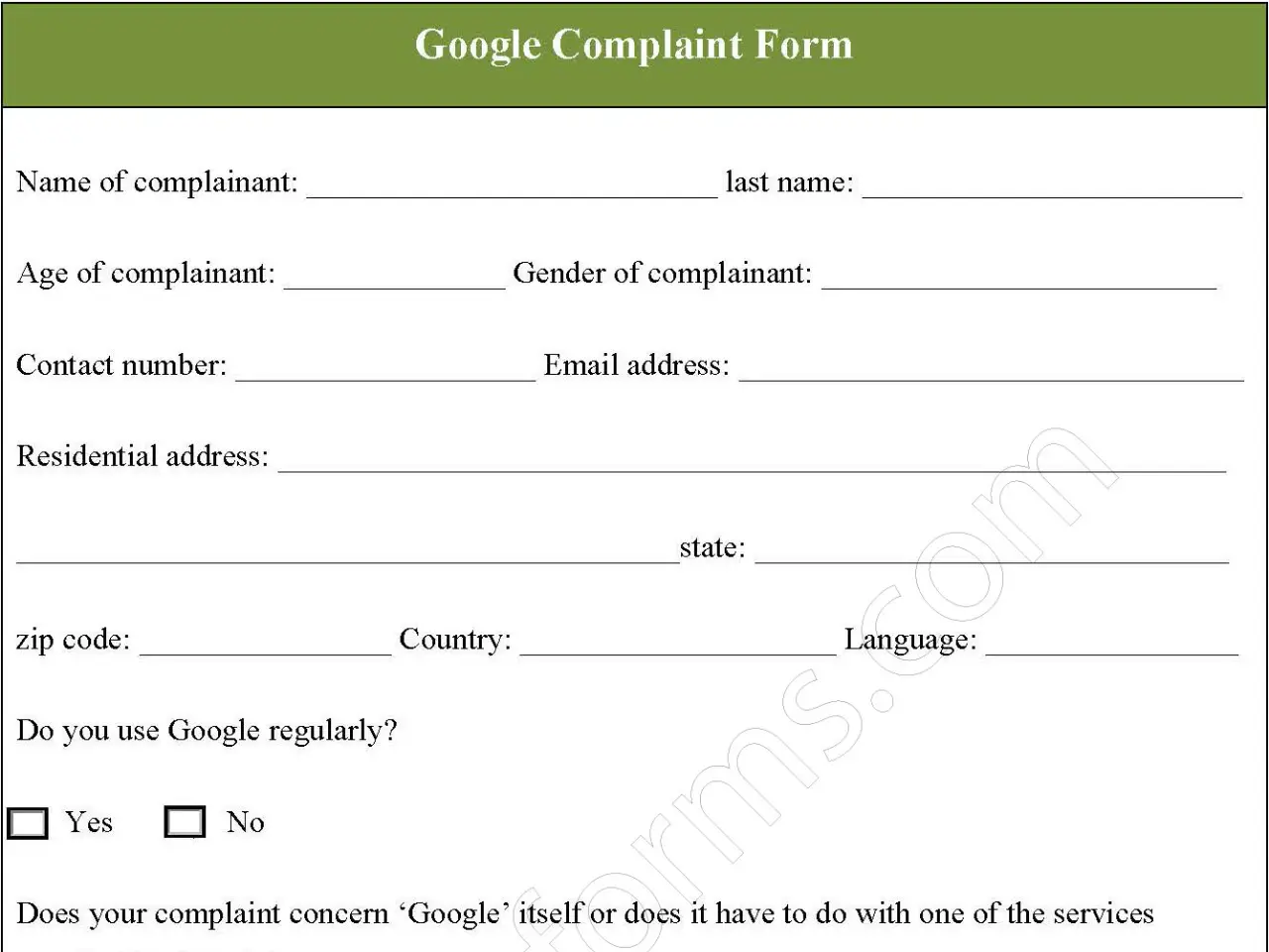 Download the Google Complaint Form Template for only $6.54.