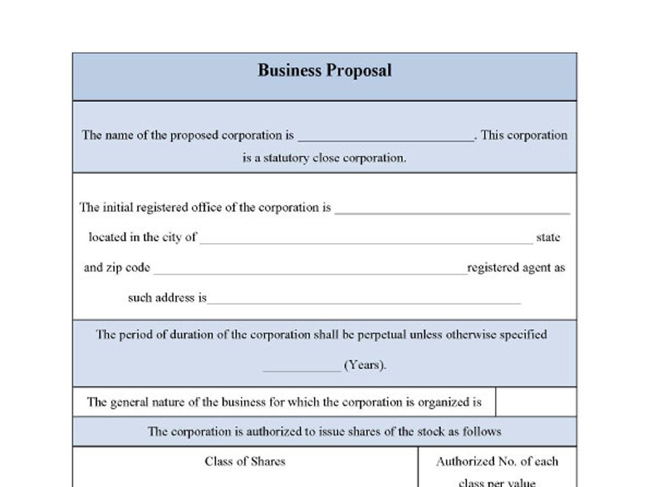 A business proposal form is a presentation that promoters of the entity make to incorporating registry to ensure that it qualifies for its registration. It shows the name, capital outlay, and nature of the business to be undertaken. It also confirms how such capital shall be repaid to the incorporators. The following is a sample business proposal form.
