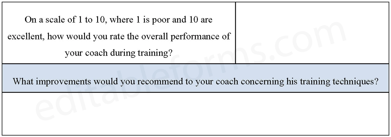 The Sports Feedback Form is used to collect feedback from athletes about their coach’s performance and training sessions. It helps improve coaching methods and ensures better training outcomes.