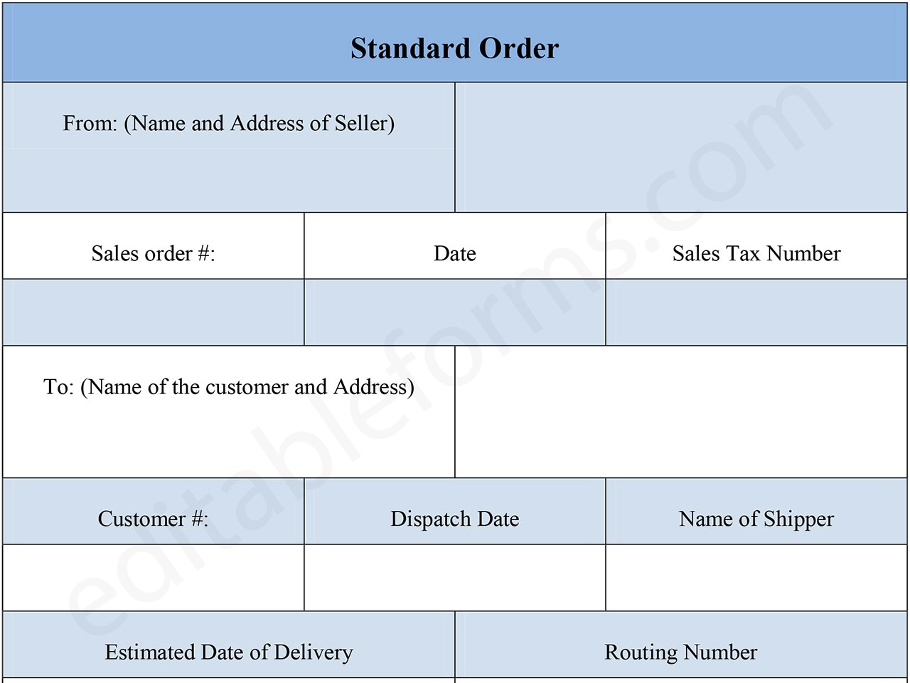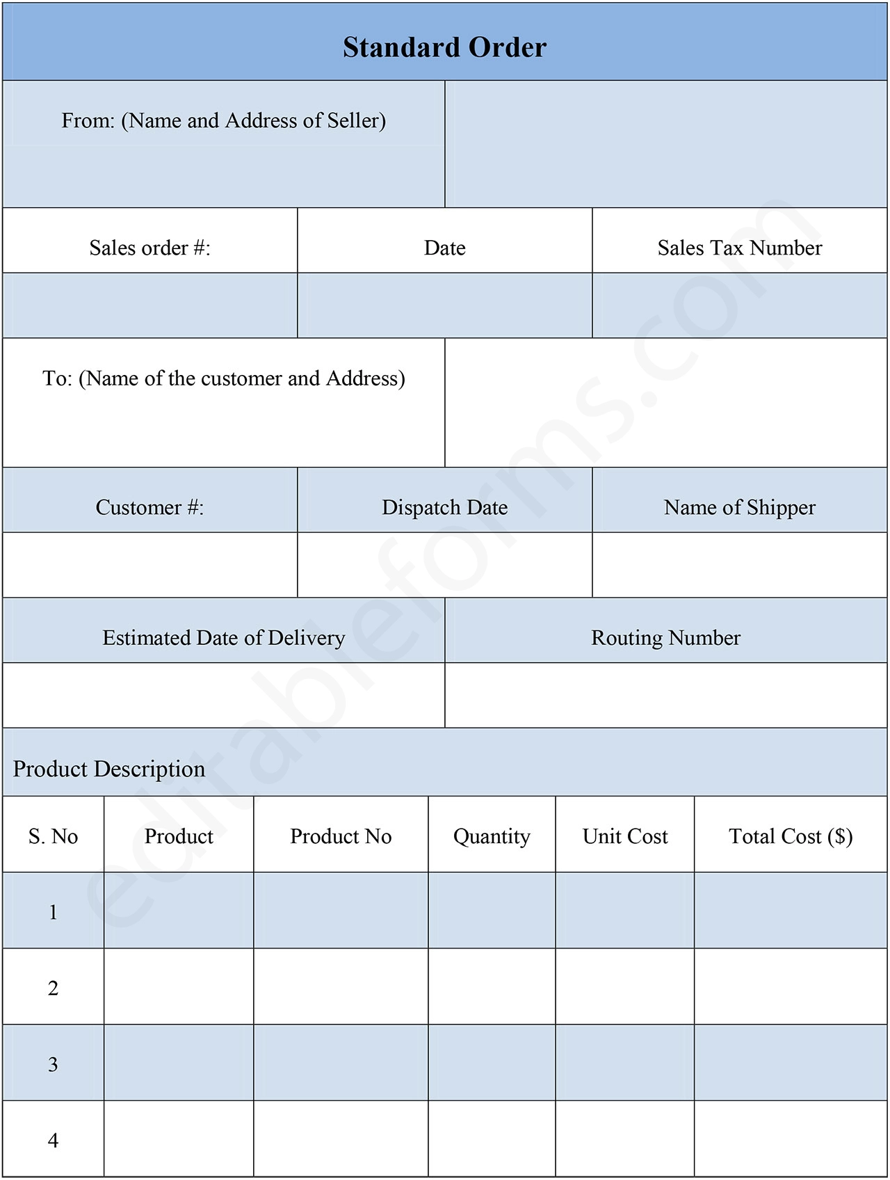 You can Download the Standard Order Form PDF, customize it according to your needs, and Print it. Standard Order Form PDF is either in MS Word or Editable PDF.