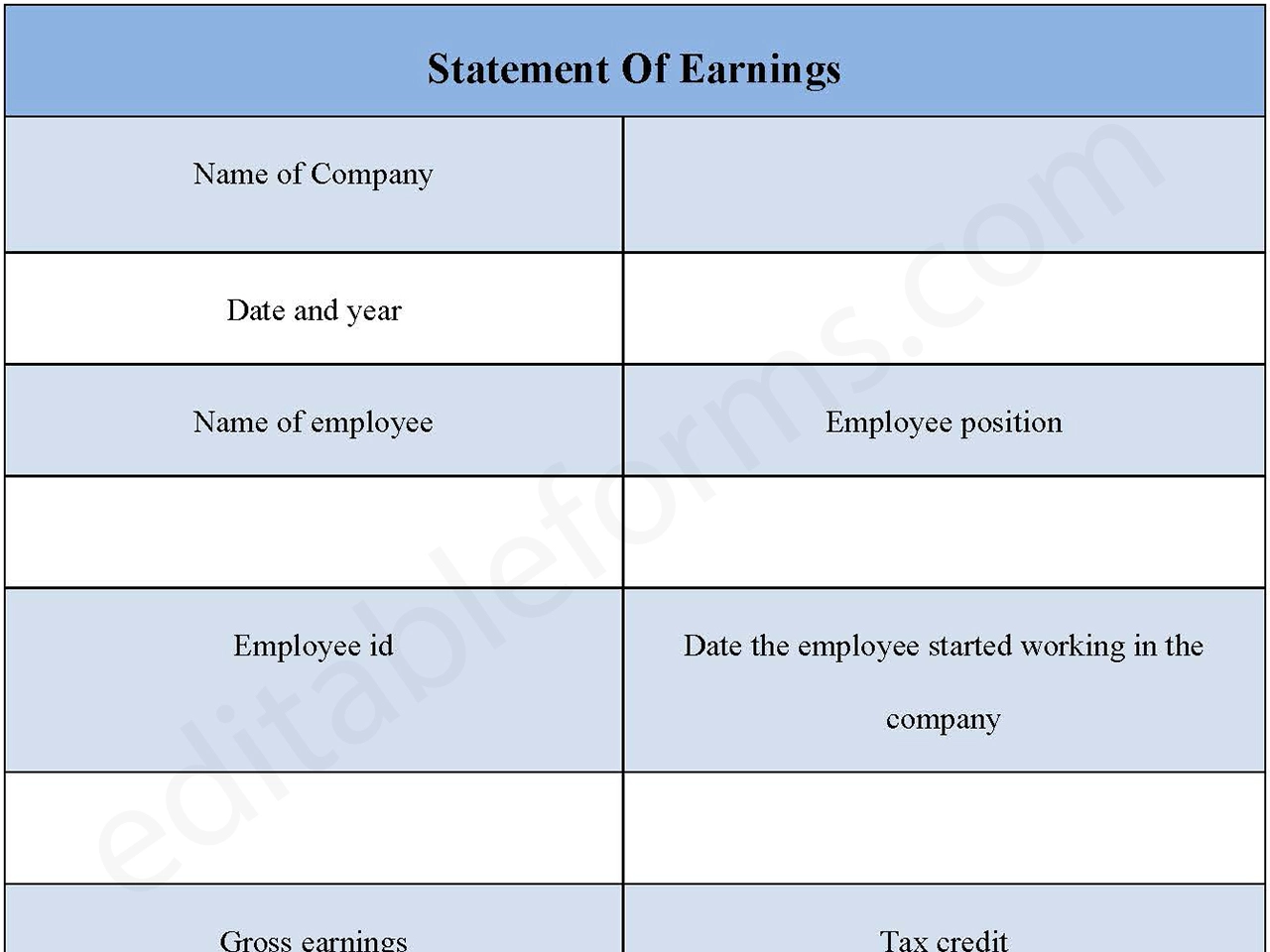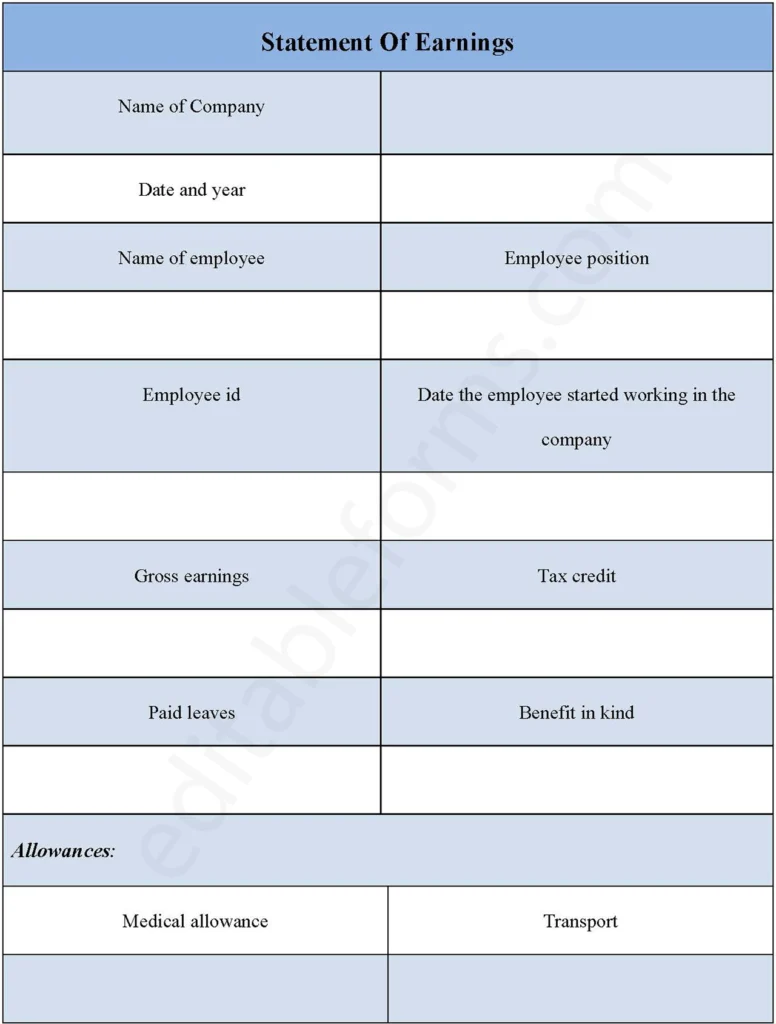 You can Download the Statement of Earnings Form PDF, customize it according to your needs, and Print it. Statement of Earnings Form PDF is either in MS Word or Editable PDF.