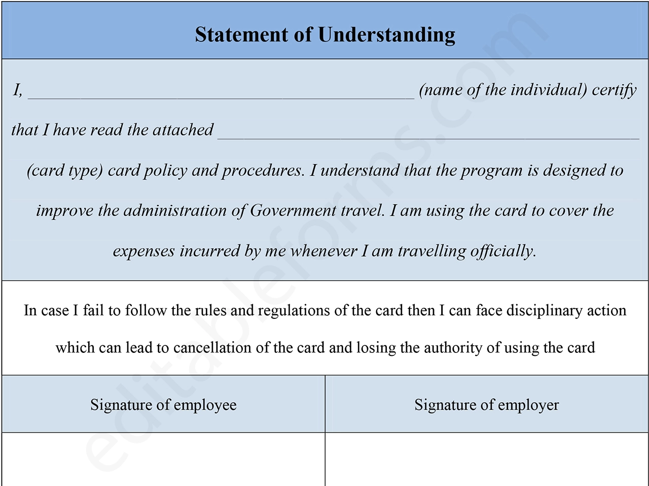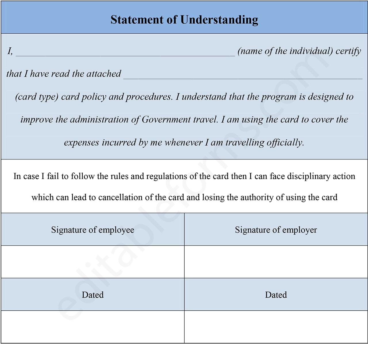 You can Download the Statement of Understanding PDF, customize it according to your needs, and Print it. Statement of Understanding PDF is either in MS Word or Editable PDF.
