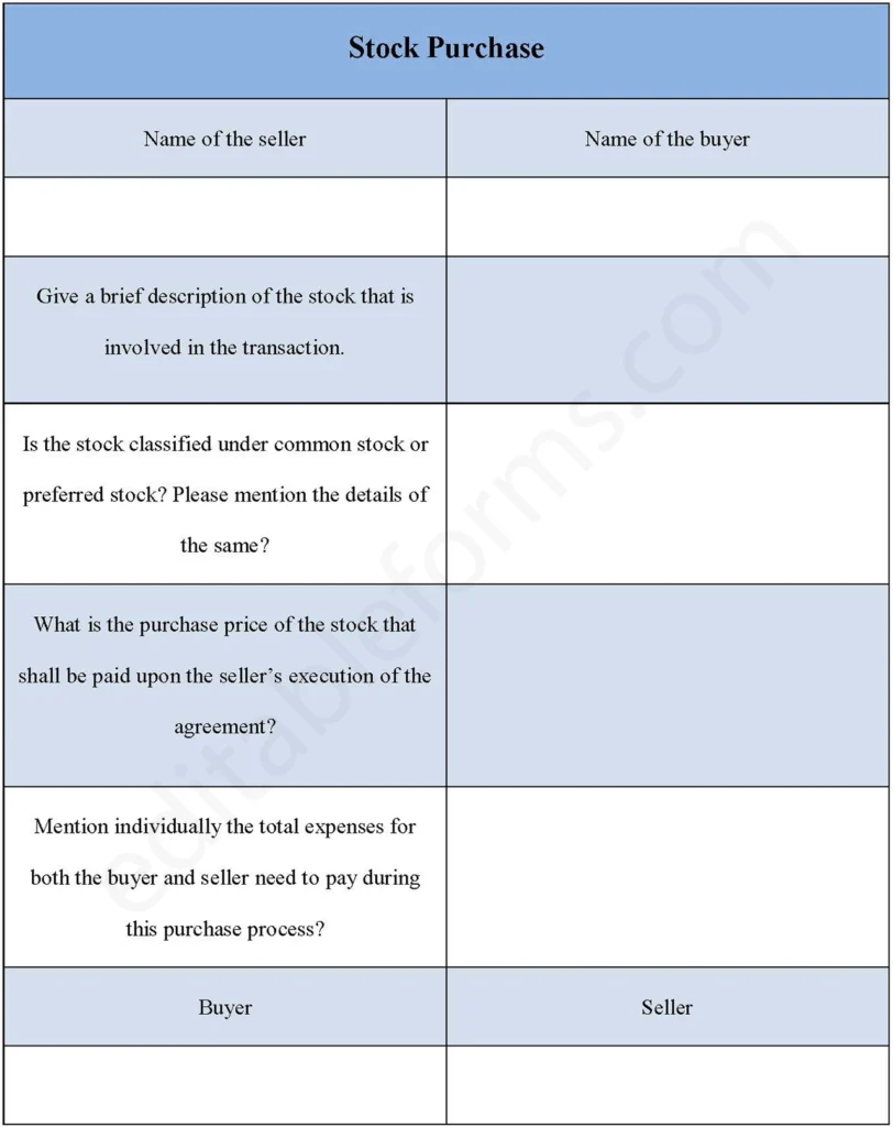 The Stock Purchase Form is a simple and effective tool for documenting stock transactions. It helps ensure clarity, transparency, and proper record-keeping for both buyers and sellers.