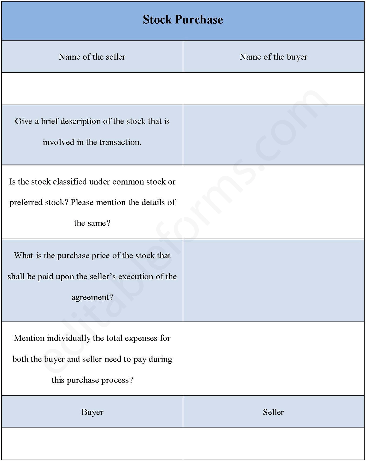 Download the Stock Purchase Form PDF for only $6.54.