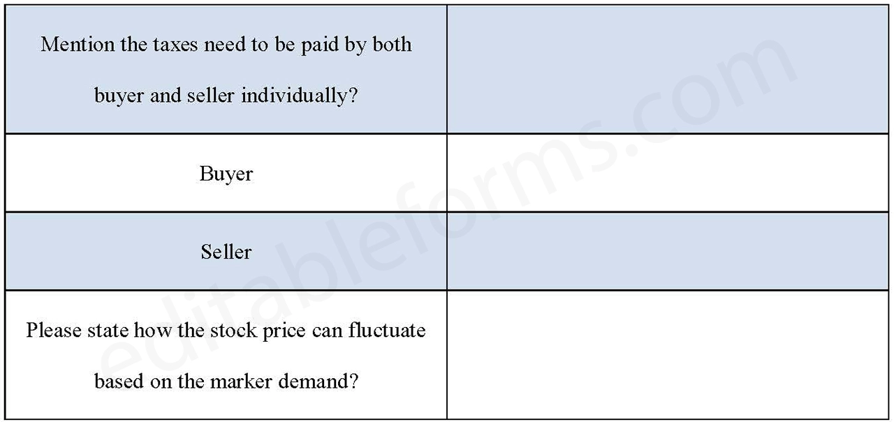 - Fill in buyer, seller, and stock details