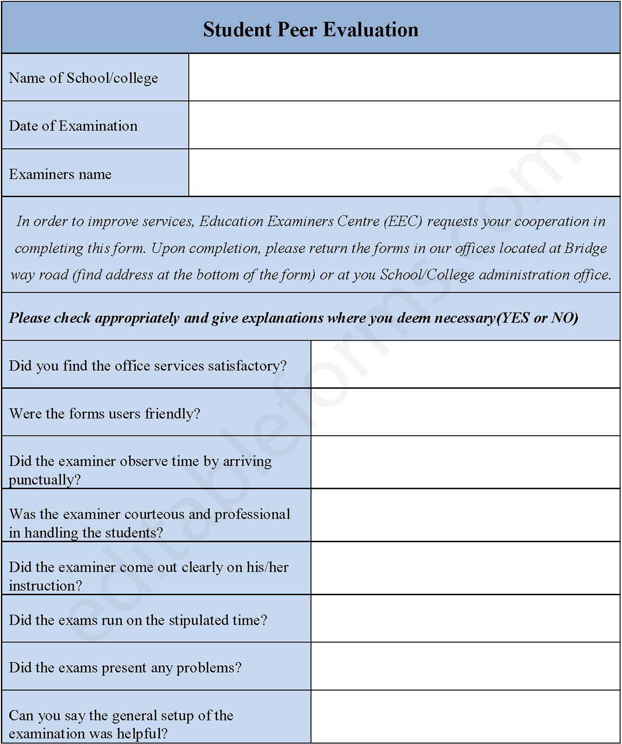 The Student Peer Evaluation Form is a simple and effective tool for collecting student feedback about examination services and administrative support. It helps institutions improve academic processes and ensure a better experience for students.