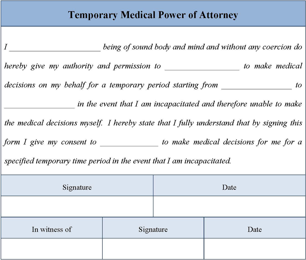 You can Download the Temporary Medical Power of Attorney Form, customize it according to your needs, and Print it. Temporary Medical Power of Attorney Form is either in MS Word or Editable PDF.